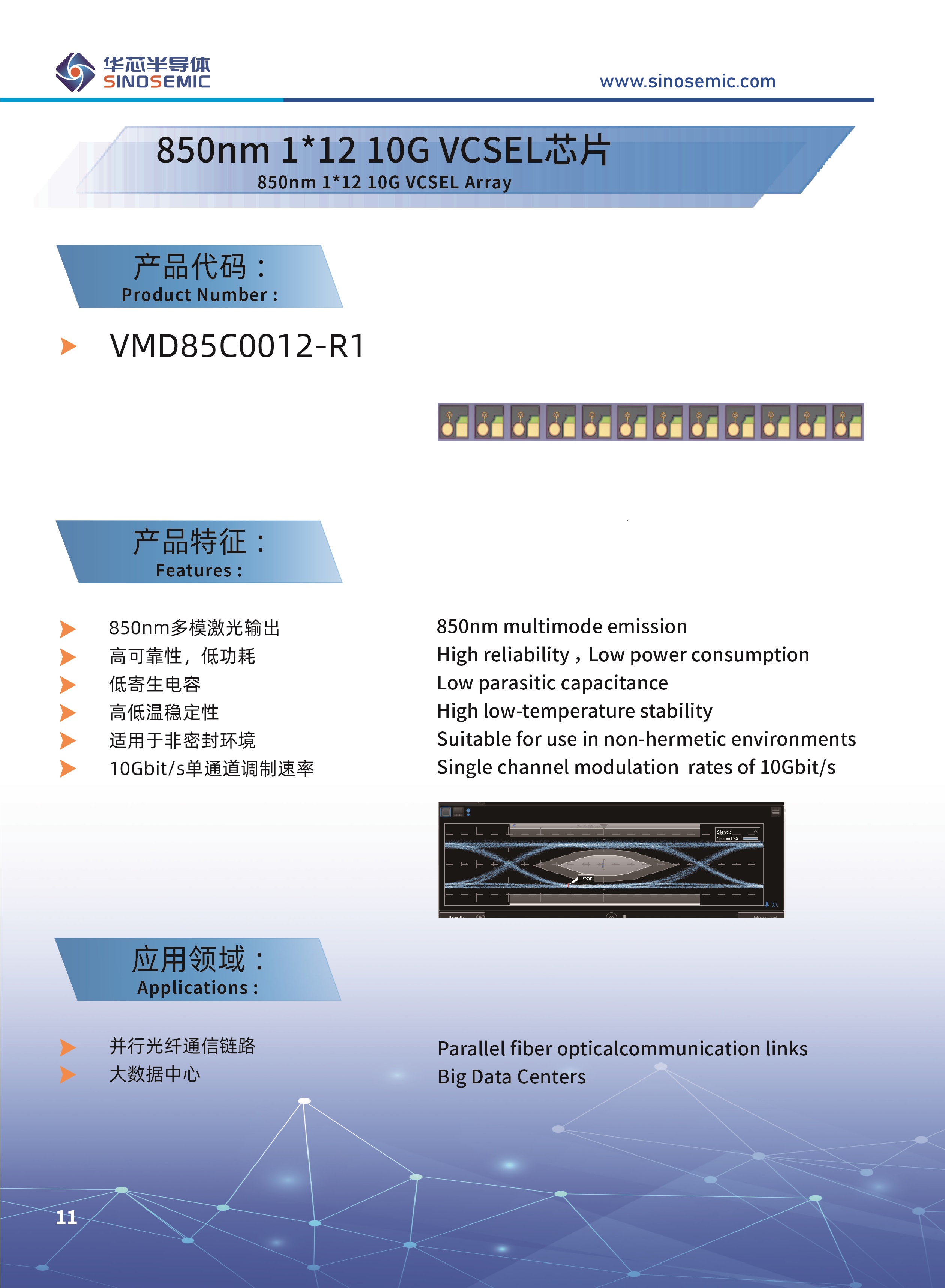850nm 1*12 10G VCSEL芯片